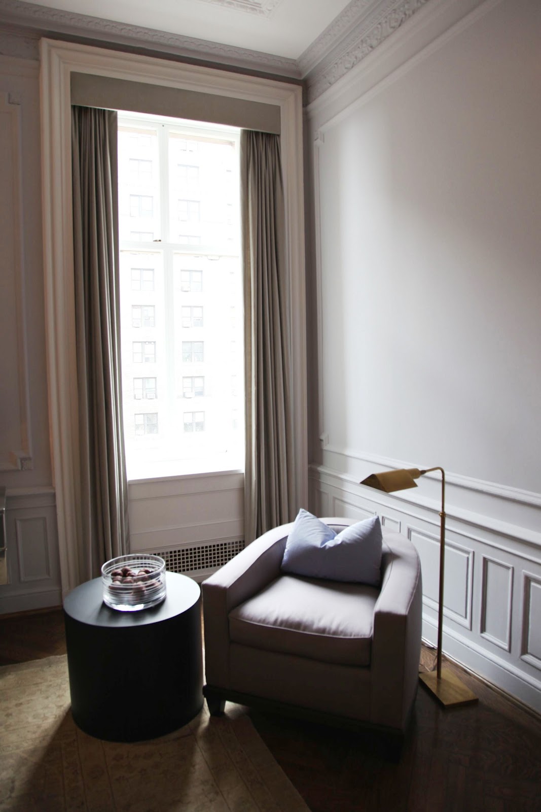 While I was at The Apthorp recently viewing a special exhibition, interior designer Stephen Sills also gave me a tour of the model apartments he designed. This one happens to be a bit more traditional and makes great use of all the beautiful architectural details. He actually made it a point to convince the developer to keep as much original details as possible including mother of pearl switches which is usually unheard of today. I'm very much an Upper East Side girl but if any building could convince me to go West, it would be The Apthorp.